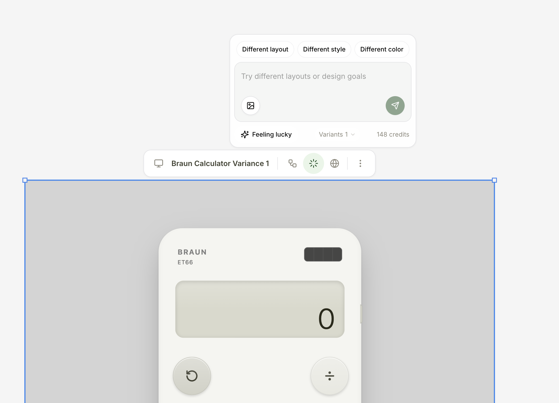 You can now reference any existing designs in your canvas as reusable components when generating new ones or editing existing ones.