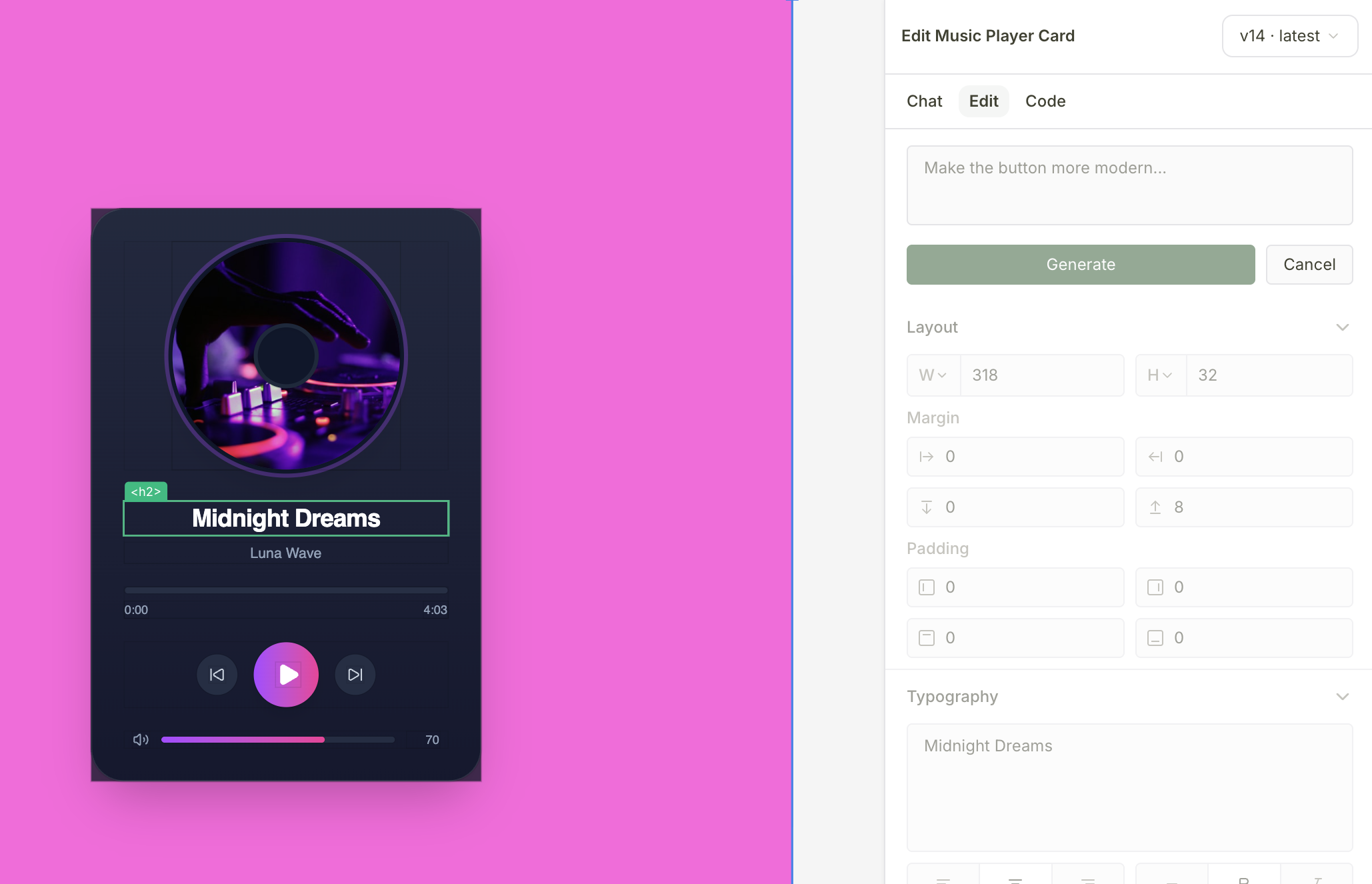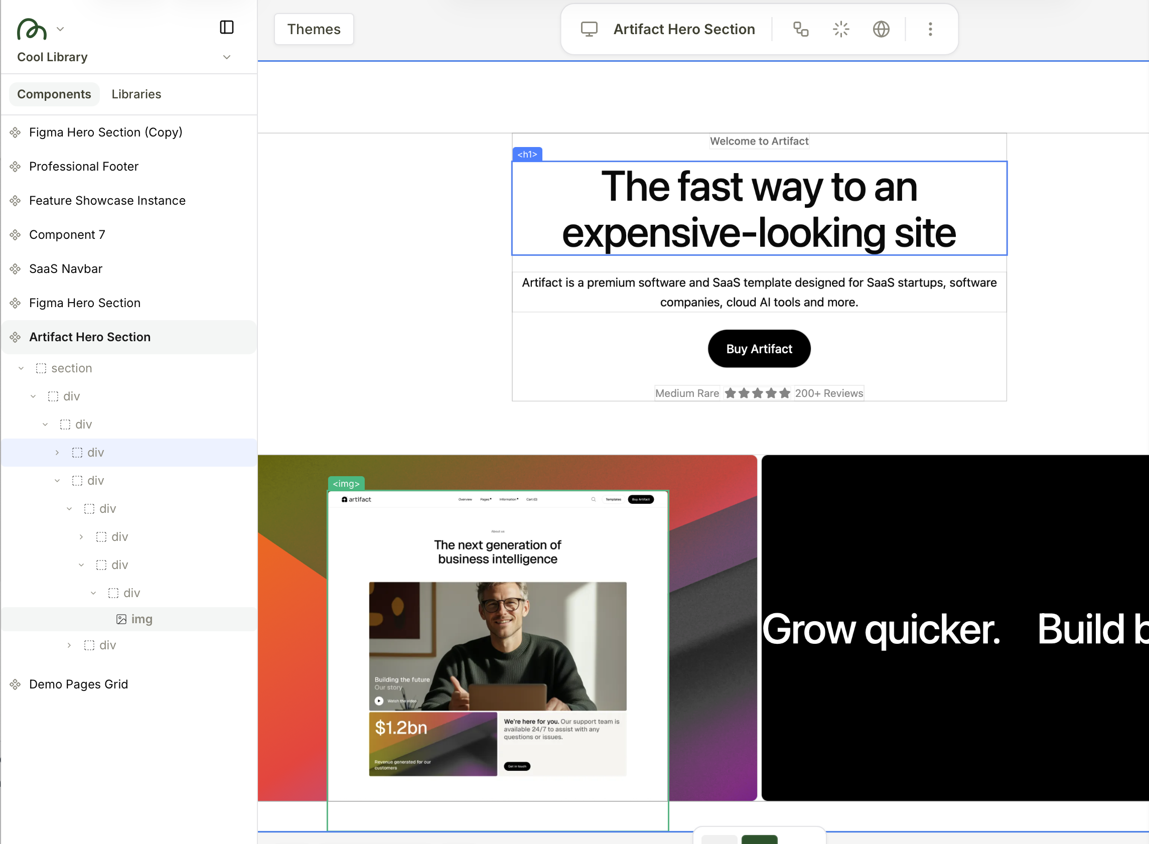Make precise edits to your components and designs using the visual editor.